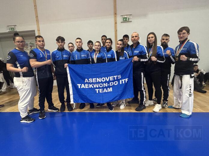 СК „Асеновец таекуон-до клуб” участва с 23-ма състезатели във възрастите деца, юноши и девойки на провелото се в София Държавно първенство в дисциплините „Форма“, „Специална техника“ и „Самозащита“. В състезанието се включиха общо около 400 състезатели от всички клубове в страната. Асеновградският успя да спечели 10 медала (4 златни, 1 сребърен и 5 бронзови) и в крайното класиране се нареди на пето място. „В почти всички възрасти имаше достойна конкуренция от над 20 състезатели. За първи път участвахме в отборните дисциплини – отборно „Форма и самозащита“, като показахме отлична подготовка“, посочват от клуба. Един от състезателите от Асеновград, който успя да стане първи в трудната дисциплина-специална техника, е Гювен Исмаилов. Златни медали за клуба от Асеновград донесоха и Мария Кухтева и Самуил Динков. Първо място спечели и отборът от асеновградчани при самозащита 14-15 г. Ето и всички медалисти: