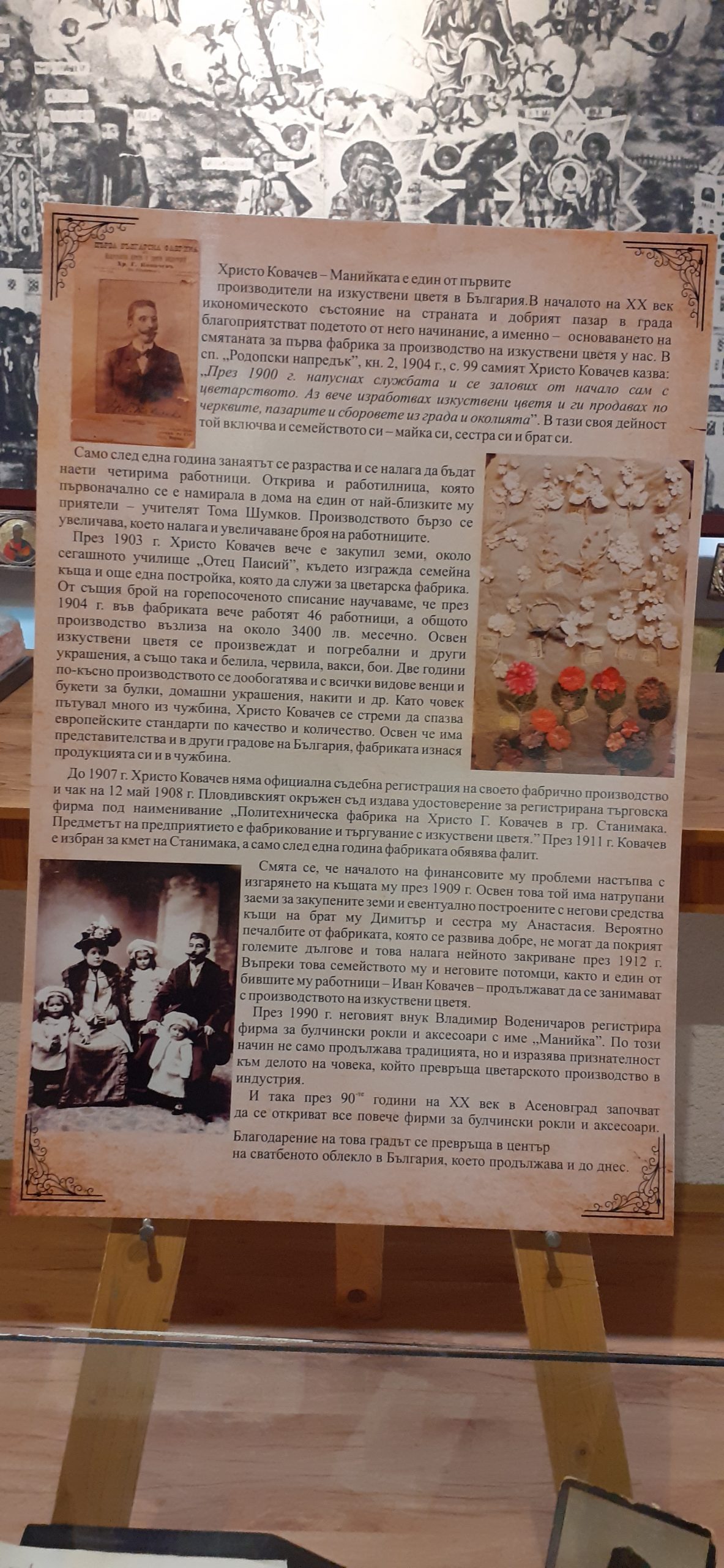 По атрактивен начин бе открита изложбата, посветена на Сватбената индустрия – “ От Манийката до наши дни“. Пред Историческия музей булки дефилираха в изящни съвременни рокли, а в изложбата бяха изложени експонати с облеклата на булките в миналото. Като част от изложбата е представена богата информация за Христо Ковачев, който още през 1900 г. открива в Станимака първата фабрика за изкуствени цветя у нас. Сред изложеното в музея има множество т.нар. „перца“, с които са се закичвали сватбарите, стапи покани за сватба, кърпички с имена на младоженците и др.