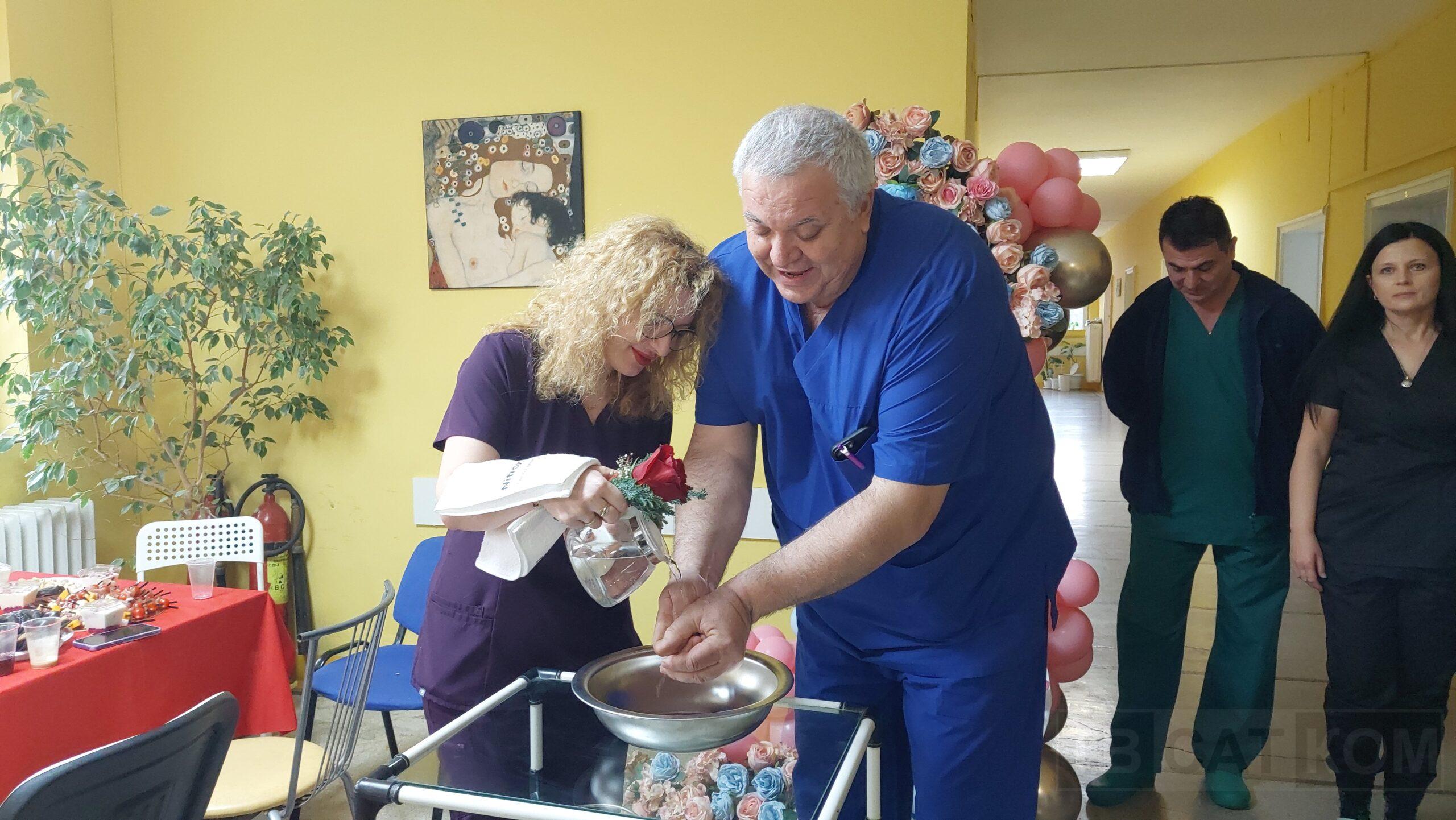 С традиционния ритуал по измиване на ръцете със сапун на началника на Акушеро-гинекологичното отделение в МБАЛ-Асеновград д-р Богдан Червенков започна празникът, посветен на Деня на родилната помощ. Традицията бе спазена и за това, за измиването на ръцете да асистира старша акушерката. Елена Арабаджиева е част от екипа на АГ отделението от една година. Тя посочи, че е много важно да се работи в разбирателство и с професионализъм и представи момичетата, които даряват живот в асеновградската болница, като разбира се честити празника на своя екип и на всички, които празнуват днес.