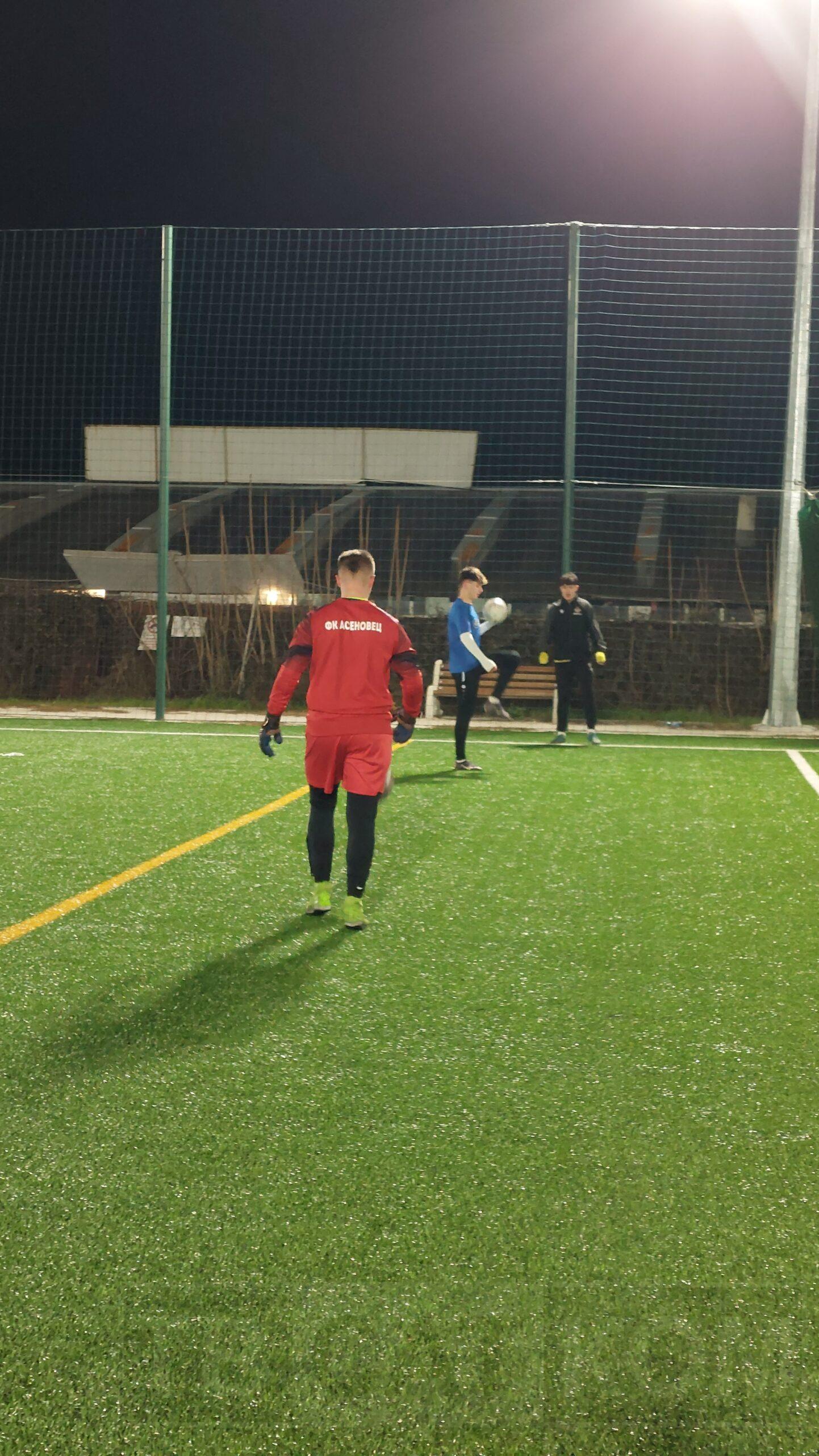 Минусовите температури не отложиха провеждането на първата тренировка за футболистите на „Асеновец“ на новоизграденото игрище на стадион „Шипка“. Въпреки че вятърът допринасяше за усещането на още по-голям студ, момчетата тренираха с огромно желание и хъс, за да се подготвят подобаващо за старта на пролетния дял от първенството.
