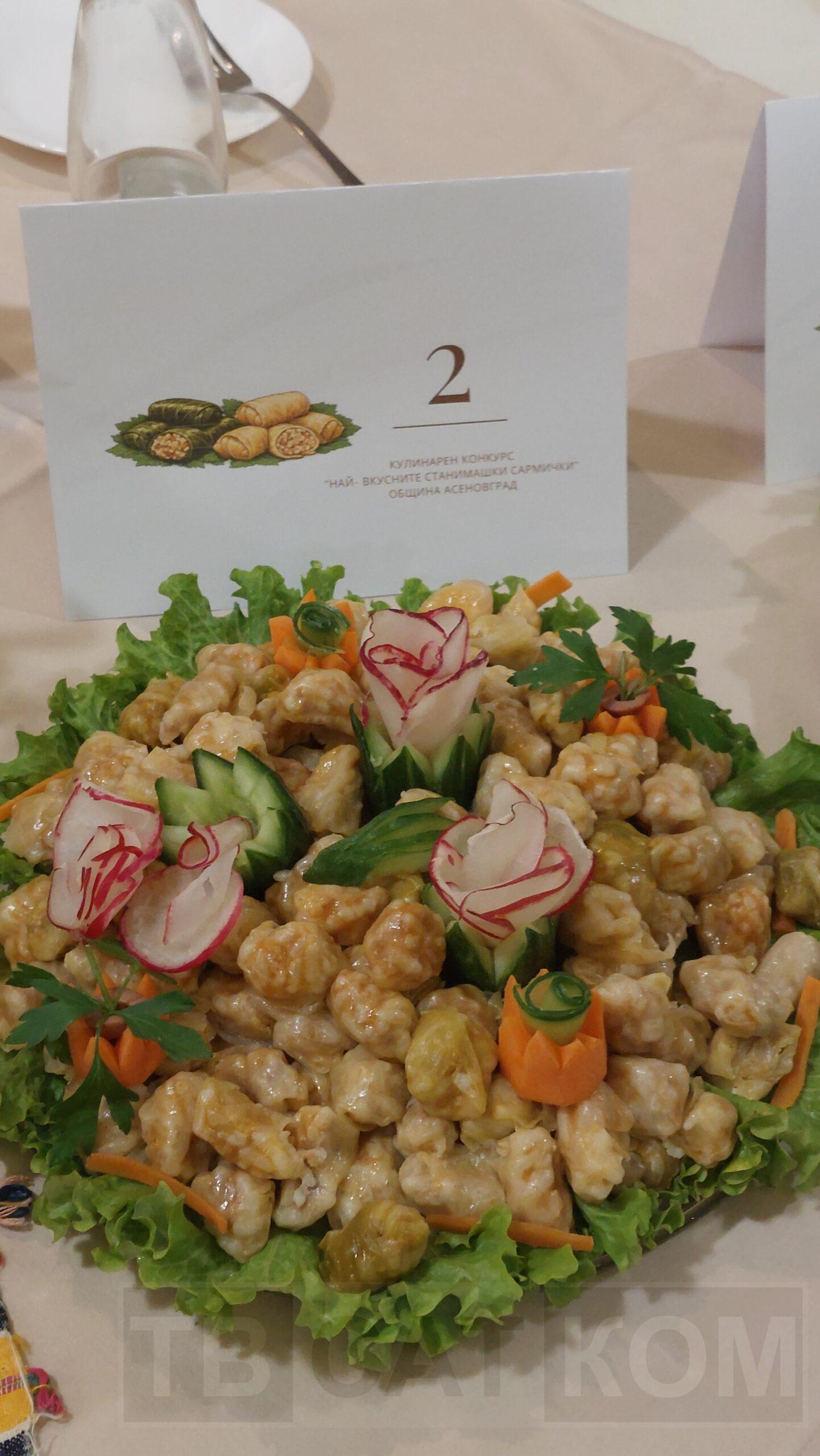 Едва ли за асеновградчанин има по-красива трапеза от тази, отрупана със станимашки сармички. Блюдата, които очакваха да бъдат дегустирани по време на познатия кулинарен конкурс в Асеновград тази година бяха 21 – от хубави, по-хубави и вероятно от вкусни по-вкусни. Иван Звездев бе специален гост в Асеновград по повод тазгодишния конкурс. Присъстващите бяха нетърпеливи да се снимат с него и да го попитат за изпитани рецепти. Иван Звездев също дегустира асеновградския деликатес и сподели с нас, че досега самият той не е приготвял такива сармички, но е впечатлен от тях. В същото време ни разказа как се приготвят един по-различен вид сарми – тракийски, които се завиват в тесто. той обеща, че при следващото кулинарно посещение в Асеновград, ще се постарае да демонстрира как се приготвят. А сега известният майстор готвач приготви за присъстващите джолан по ловджийски – с асеновградски мавруд, гъби, лук, бекон и кисели краставички. Помощник готвач бе синът му, който също носи неговото име. След като ястието бе готово, всеки един от присъстващите го опита и отзивите, няма как, бяха само положителни и съпроводени с наздравици.