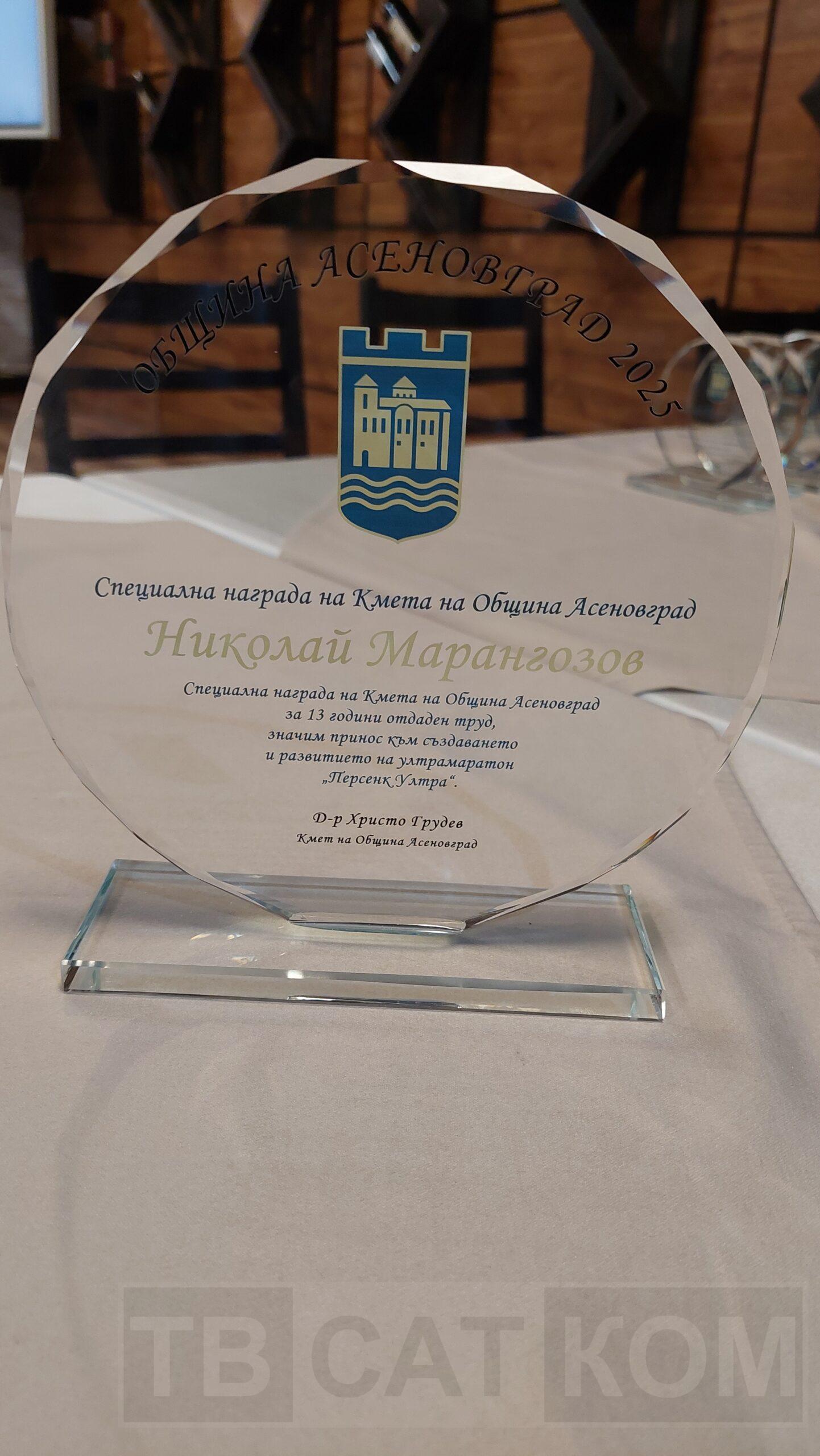 Още преди да бъдат обявени спортистите, наредени на първите три места, бяха връчени специалните награди. В категория „Най-проспериращ млад състезател“ бяха отличени Ива Янева от СК „Тритон екстрийм”, Златка Филипова КСТ „Асеновец“, Борислава Милушева СКВТ „Асеновец“, Ваня Сакалийска от СК „Хамон“ и Невена Велкова СК „Оками дожо“. В категорията „Спортно събитие за 2025 г.“ за поредна година наградата бе присъдена на „Персенк Ултра“, която получи организаторът на събитието Николай Марангозов. Той получи и традиционната Специална награда на кмета на общината. „Треньор на годината“ и тази година стана Петко Чирпанлиев. За „Отбор на годината“ бе обявен първият отбор от Асеновград, класирал се в Елитна група до 15 години – момчетата от ФК „Шипка Старс“.