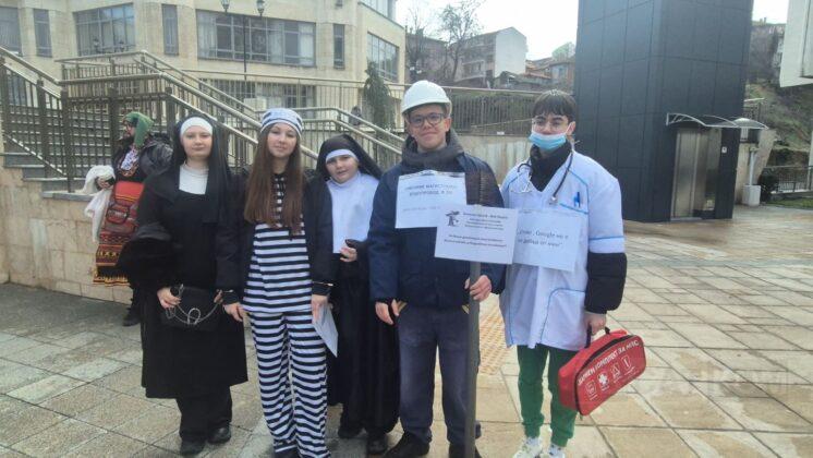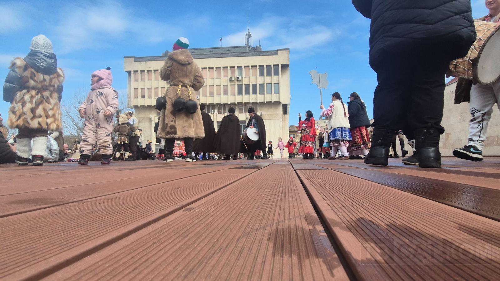 Мъже, жени и деца, облечени в кукерски костюми и атрактивни карнавални образи, се включиха в шествието. Сред тях можеха да се видят Баба Яга, Затворник, Полицайка, както и образи на животни, включително „ранобудната Мецана“, слязла от планината специално за празника. Звънът на чановете, опасани около кръстовете на кукерите, огласи града и създаде автентична атмосфера, характерна за българските обичаи.