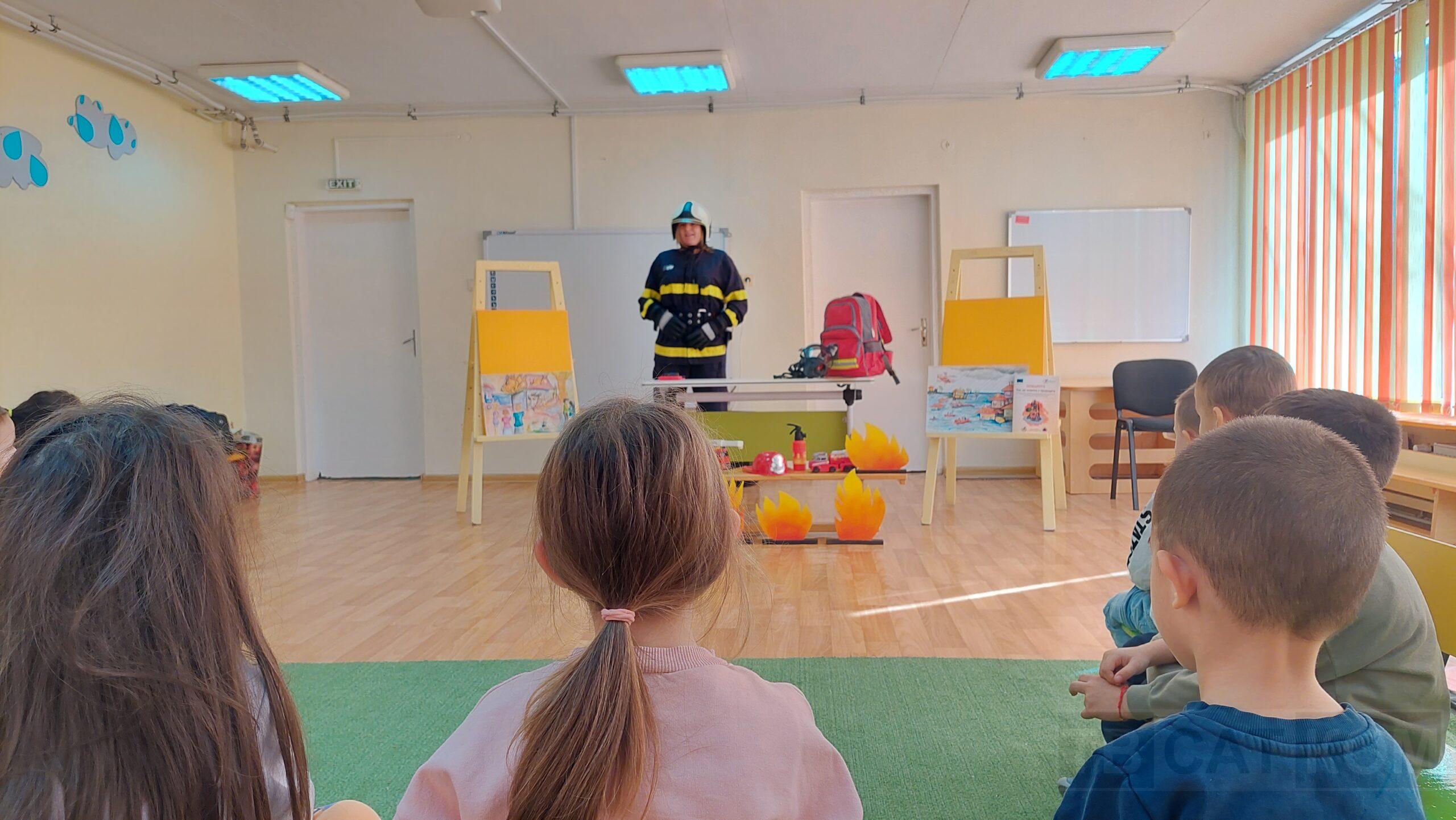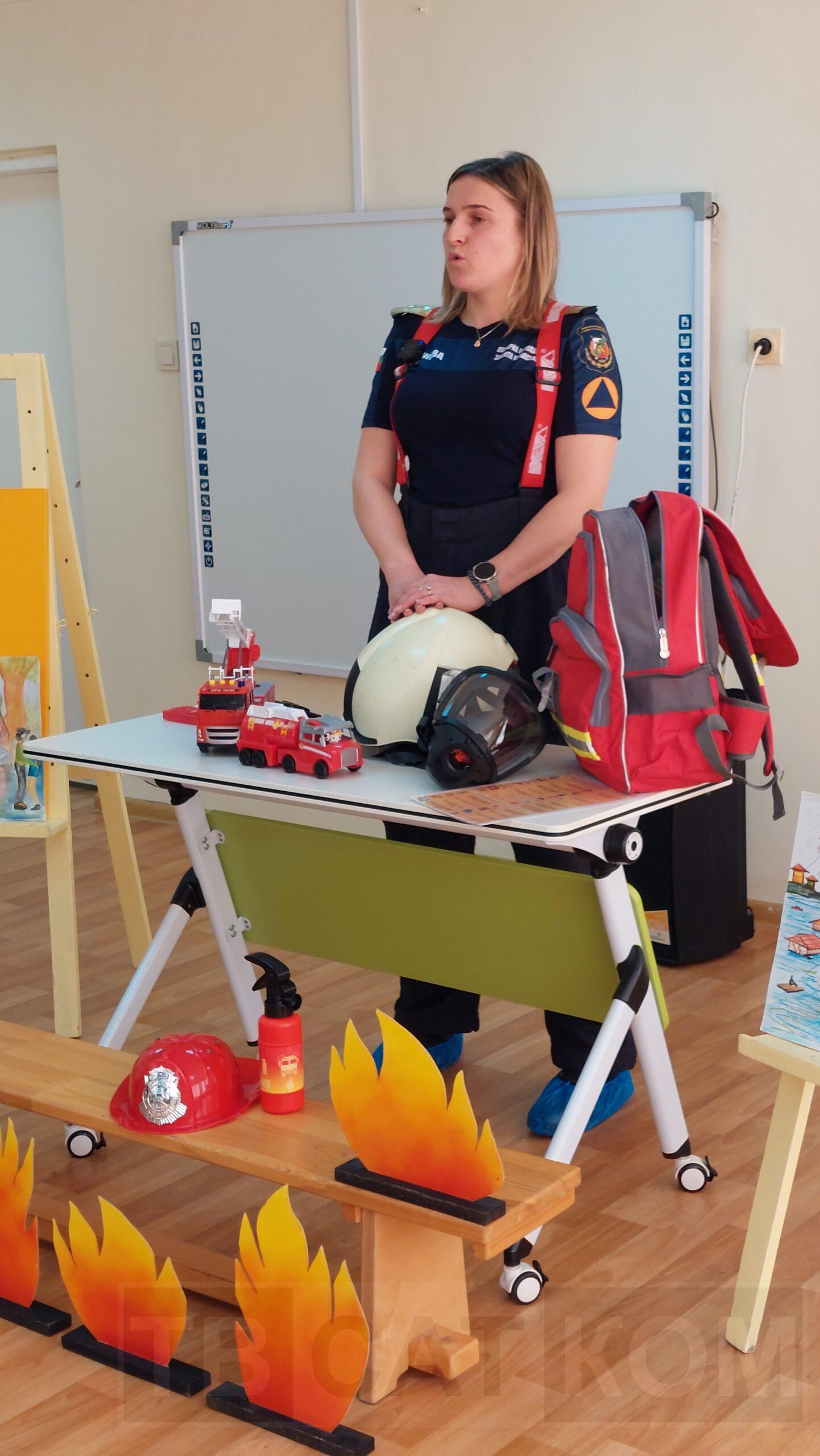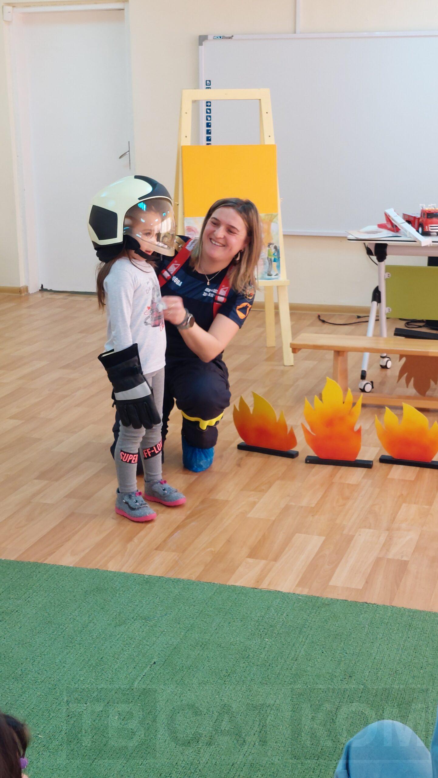 Работата на огнеборците е изключително динамична и е една от най-рисковите, свързана с бързина, отговорност, съчетаваща физическата сила с психическата устойчивост. Тя се приема като типично мъжка професия, но един неин представител доказва, че жените могат да я изпълняват не по-зле от силния пол. Антония Антонова е инспектор „Пожарогасителна и спасителна Дейност“ в районната служба в Асеновград повече от 10 години. Влизала е неведнъж в огъня, буквално, и е една от малкото жени, част от Регионална дирекция „Пожарна безопасност и защита на населението“ – Пловдив, която не отстъпва пред мъжете на терен. Но като жена и майка, разбира най-добре, колко важно е да се говори на децата за пожарната безопасност и да се създават навици и умения при рискови ситуации от най-ранна детска възраст. Антония гостува с тази цел в ДГ „Надежда“, заедно с Таня Костадинова, също част от екипа на пловдивската пожарна, но в отдел „Връзки с обществеността“. По увлекателен начин, с истински подход към децата, двете дами проведоха различни полезни занимания. Под формата на игра, малчуганите от втора група научиха как могат да подадат сигнал при пожар или бедствие, какво е най-важно да съобщят и как трябва да реагират. Наблюдаваха с интерес как инспектор Антонова слага за секунди своята униформа и разбраха какво включва цялата екипировка на пожарникаря – разбира се, децата бяха нетърпеливи сами да изпробват екипировката. Те научиха още как трябва да се държат, когато са в природата, на пикник, защо трябва да се внимава при палене на огън на открито, а същои така и какво включва раницата за първа необходимост при бедствия. Малчуганите получиха и подаръци, а накрая определено разбрахме дали урокът е бил интересен и полезен за тях, което си пролича от отговора на въпроса: „Кой иска да стане пожарникар“ – всичко отговориха заедно „Аз!“.