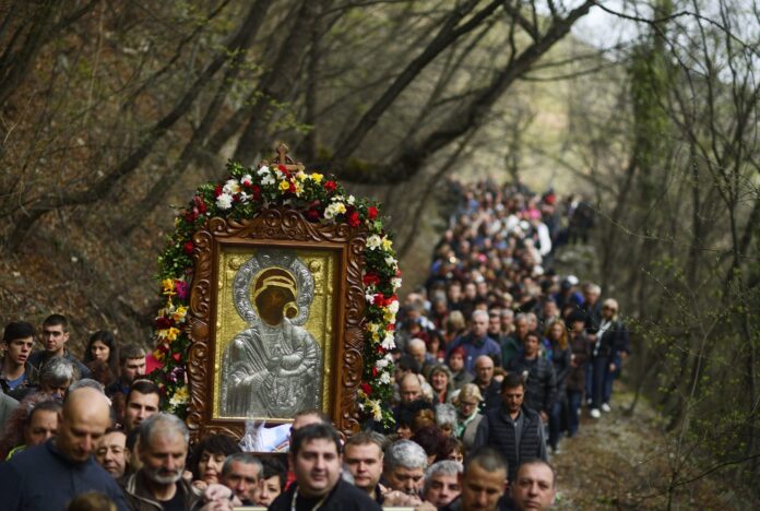 Поради това, за да спре нейното „бягство“, хората започнали да провеждат литийно шествие с иконата на Божията майка, с което, според легендата, се върнало и благоденствието в региона.