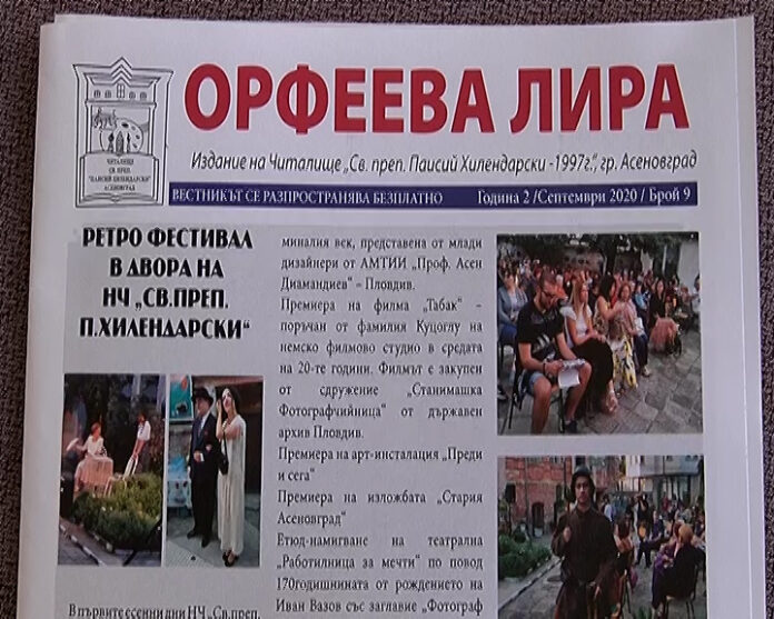 Печатното издание обхваща инициативите на НЧ ”Св. преп. П. Хилендарски” през месеците юли, август и септември т.г. и съдържа 8 страници, каза за ТВ САТ КОМ Василка Дочева-председател на ЛК ”Орфей” и част на редакционния екип на вестника.