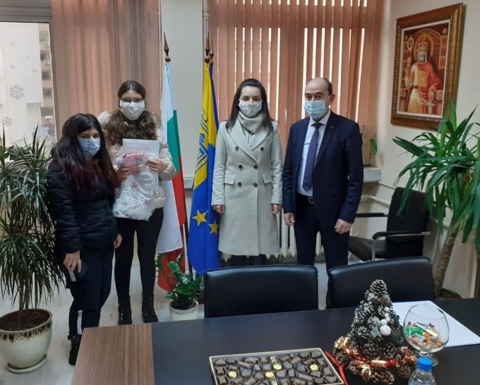 Младежите дариха саморъчно изработени от тях предпазни маски за лице с десен от коледни мотиви. Младите дизайнери са ученици от специалност „Моделиер-технолог на облекло от текстил“ от ПГ „Свети Патриарх Евтимий“. Освен това, талантливите моделиери връчиха и поздравителни адреси по повод наближаващите коледни и новогодишни празници.